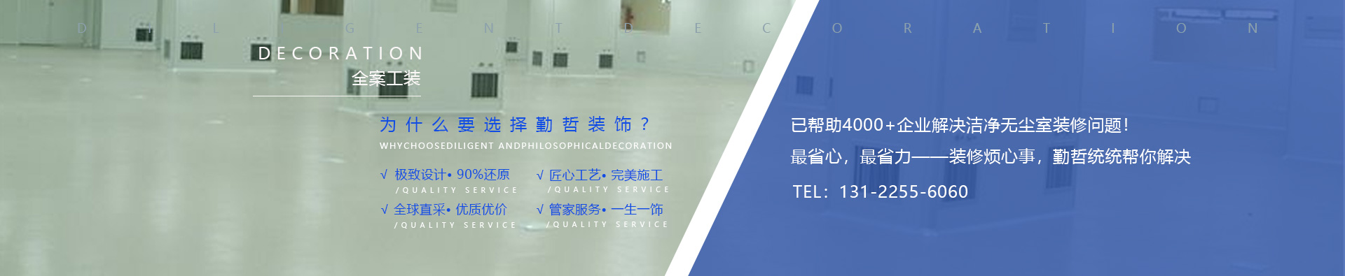 后期服務(wù)保障,免去裝修的所有后顧之憂讓您放心更省心;用品質(zhì)說(shuō)話,超長(zhǎng)售后,為每一個(gè)項(xiàng)目提供高效優(yōu)質(zhì)服務(wù),上海潔凈車間裝修信賴于勤哲裝飾。